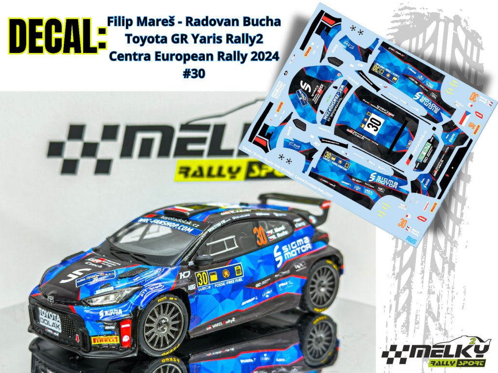 Detailní polepy pro stavbu modelu vozu Toyota GR Yaris Rally2 posádky Filip Mareš – Radovan Bucha z podniku Central European Rally 2024. 🏁